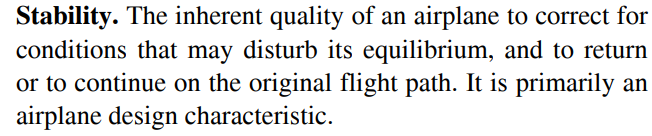 모든 비행기는 stability 를 가지게 설계되어 졌다.