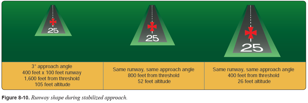 - Stabilized Approach : The pilot establishes and maintains a constant angle of glide path towards a predetermined point on the landing runway with the airplane in a position where the minimum input of all controls will result in a safe landing.