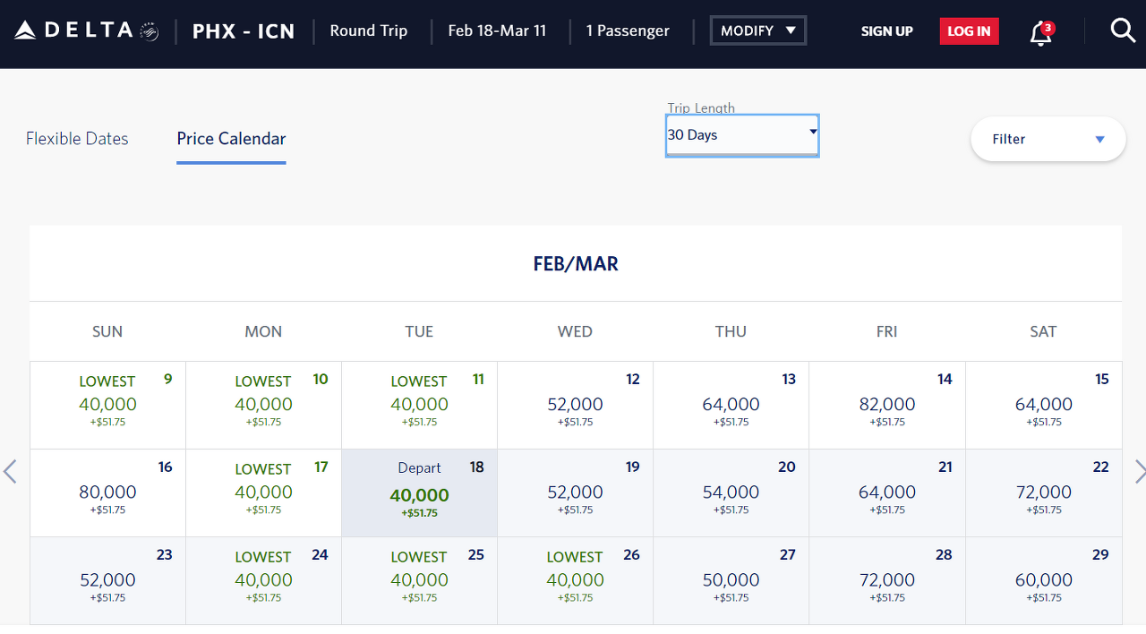 드는 마일리지는 약 26,000 마일리지, 왕복은 40,000 마일리지 입니다.