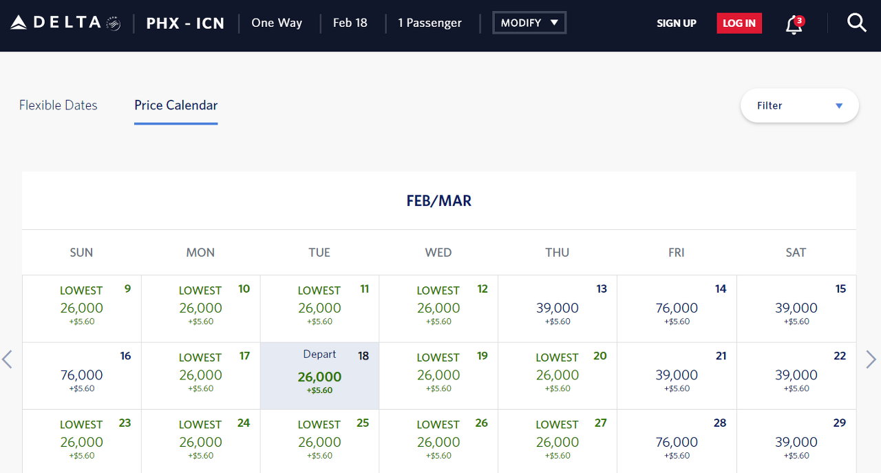시기별로 다르지만 지금 기준으로 일~수요일에 Phoenix 에서 인천으로 갈 때