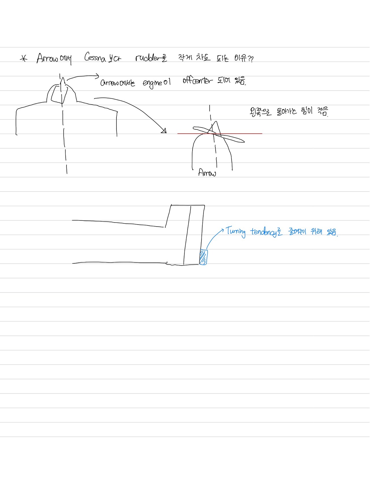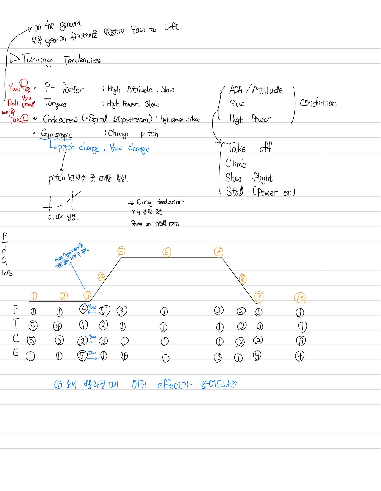 그러나 Tail wheel 의 경우 Take off 할 때 Pitch를 negative 로 하고 가기 때문에 Right turning tendancy 를 만든다고 하죠.