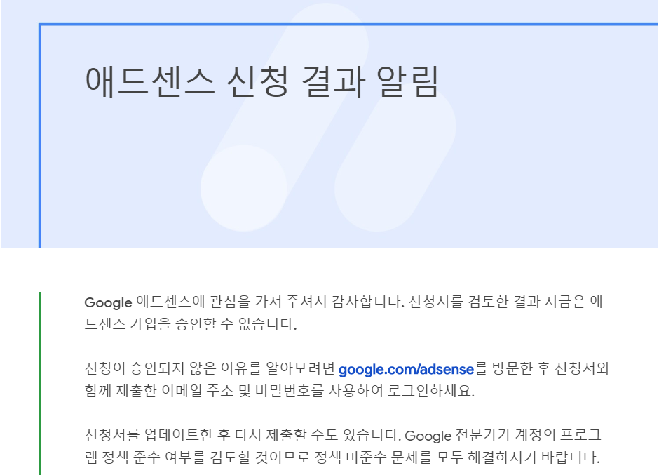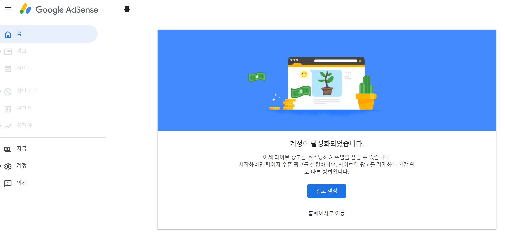신청했던 애드센스였어요.