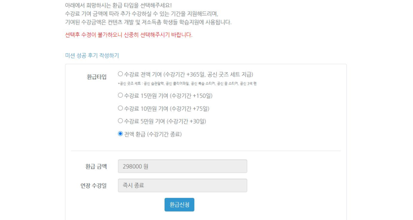 그 다음날 '상태' 칸이 수강료기여에서 환급신청으로 바뀌게 됩니다.