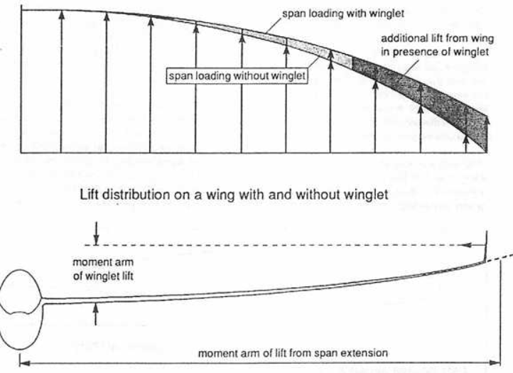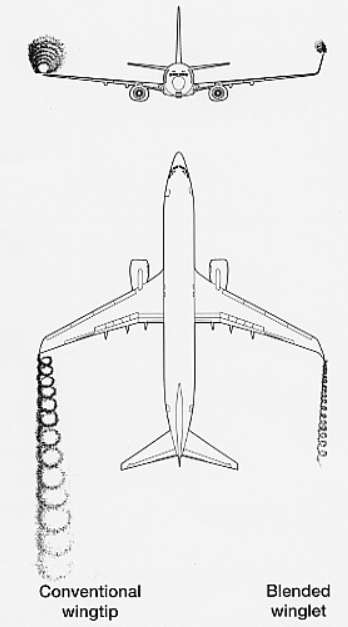 날개의 끝부분 (Wingtip) 이 더 얇기 때문에 Vortex 를 줄여줄 수도 있습니다.