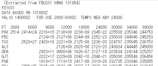 Aviation weather 에서 제공하는 Wind/Temp aloft 입니다.