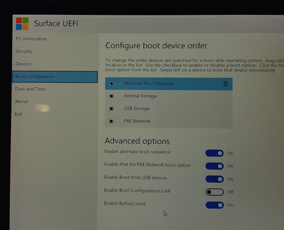 Battery Limit is a UEFI setting that changes how the Surface device battery is charged and may prolong its longevity.