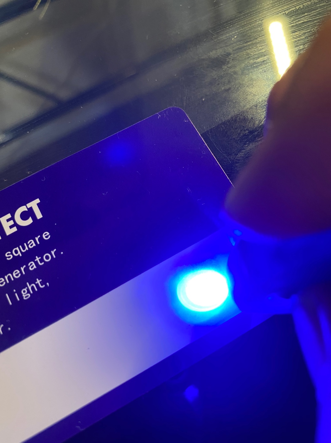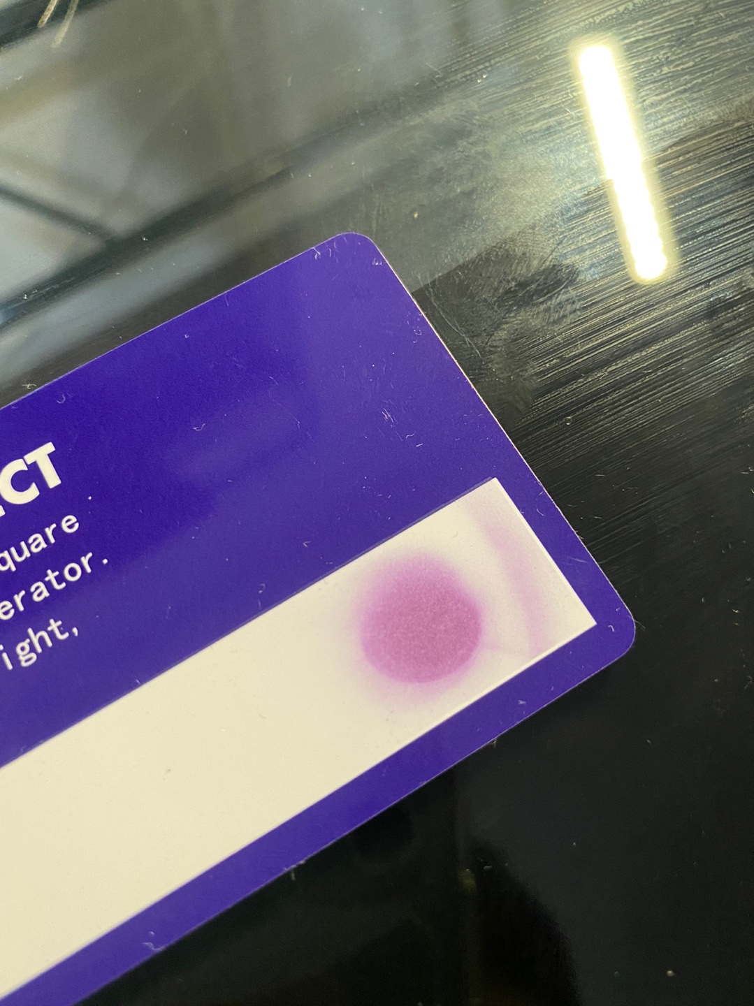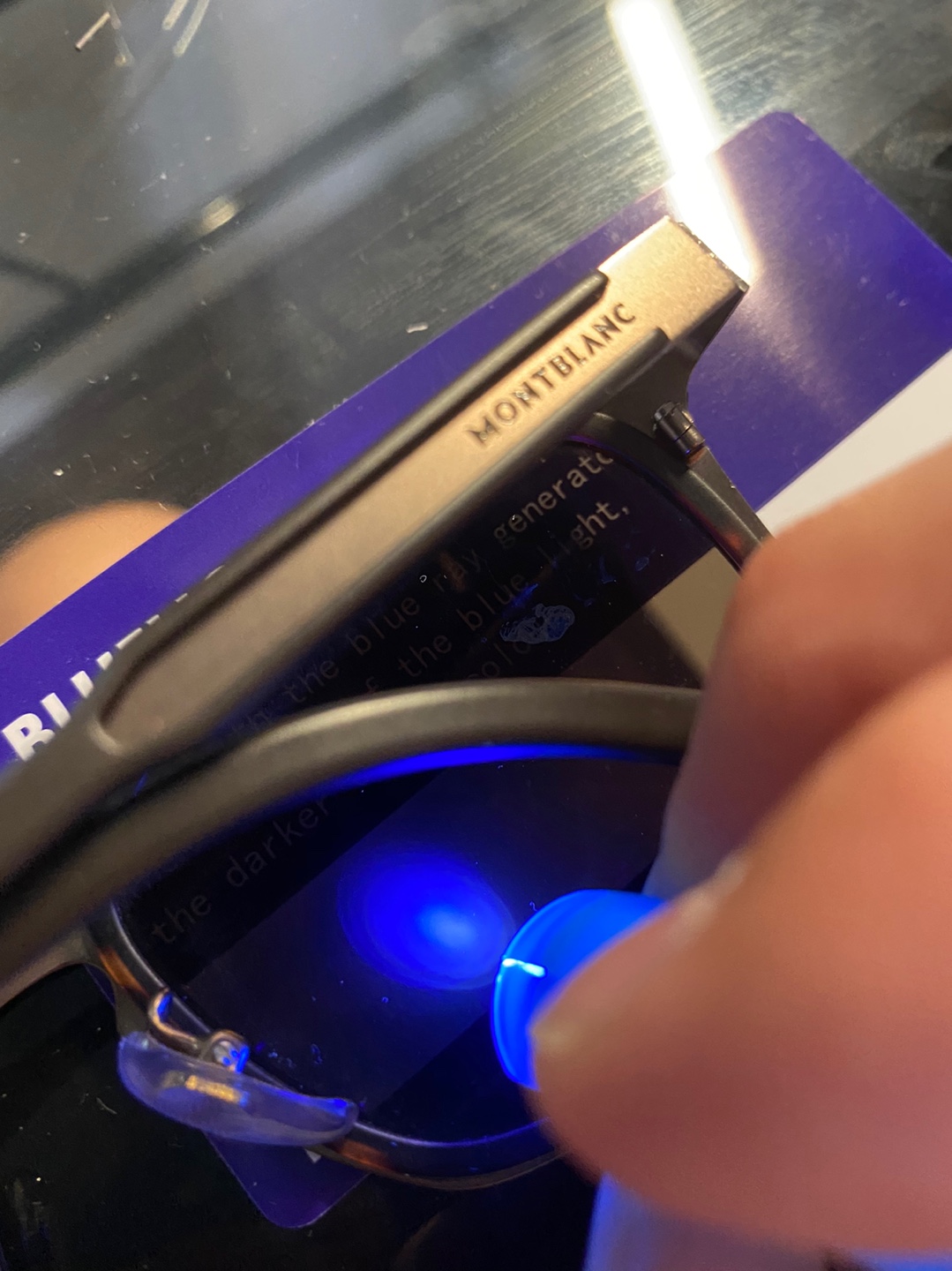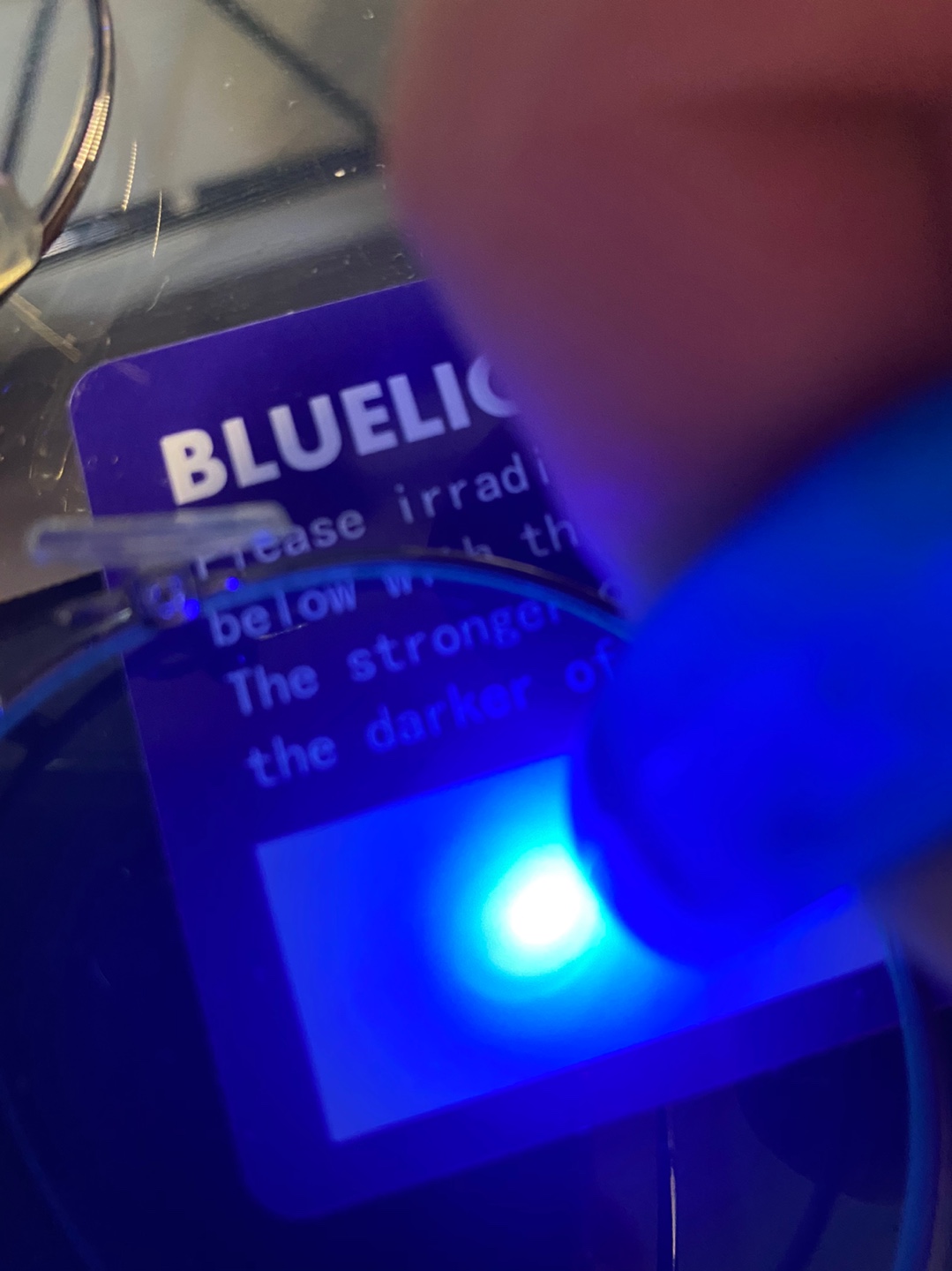 이 안경은 살짝 누런 빛을 내는 안경인데 이렇게 10초를 쏘았을 경우 딱 저정도 색깔이 변했어요.