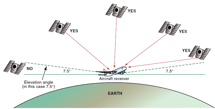 그래서 보통 비행기를 기준으로 7.5º 각도 아래의 위성을 제외시키게 된다.