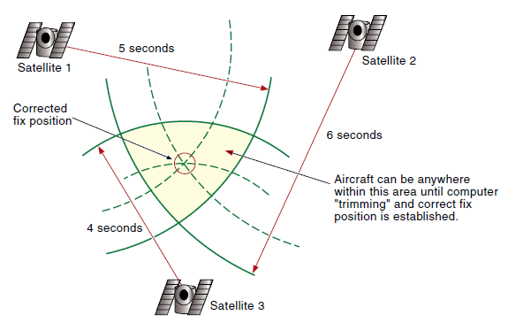 Pseudo-random code 를 위성으로 부터 받아 비행기에서 그 시간차를 계산에 거리를 파악한다. 그리고 Ephemeris data에 대입해 내 위치를 나타내게 된다. 말 그대로 시간차를 이용하기 때문에 시간차를 정확하게 파악하지 못하면 위치에 대한 오차가 발생하게 된다.