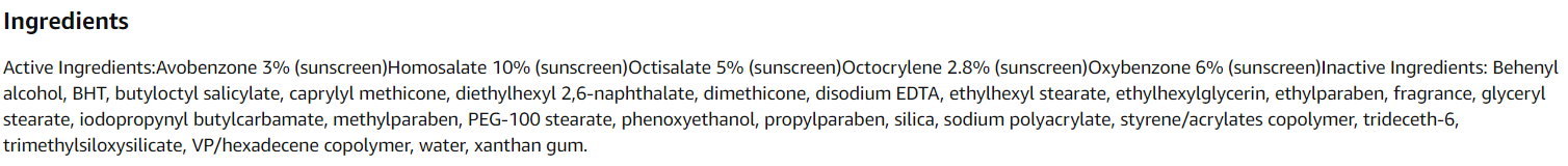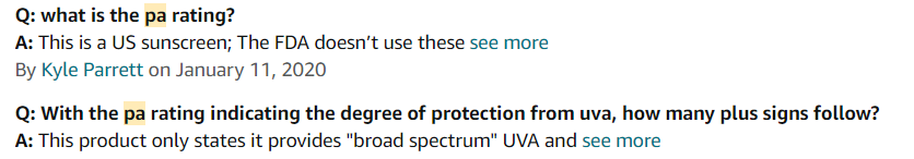 - FDA 에서는 PA 표시 안 하므로 Avobenzone 확인 (3%면 최대)
