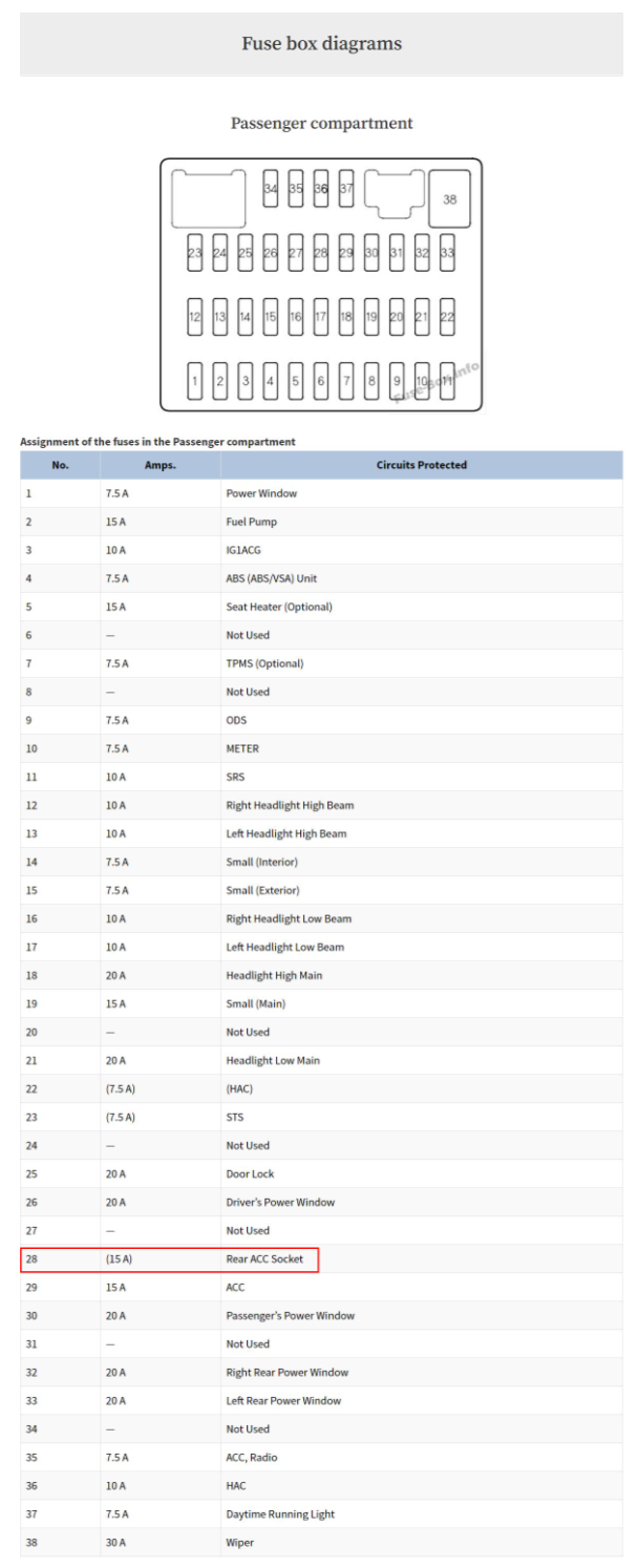 28번의 15amp Fuse 가 나간것을 알았으니