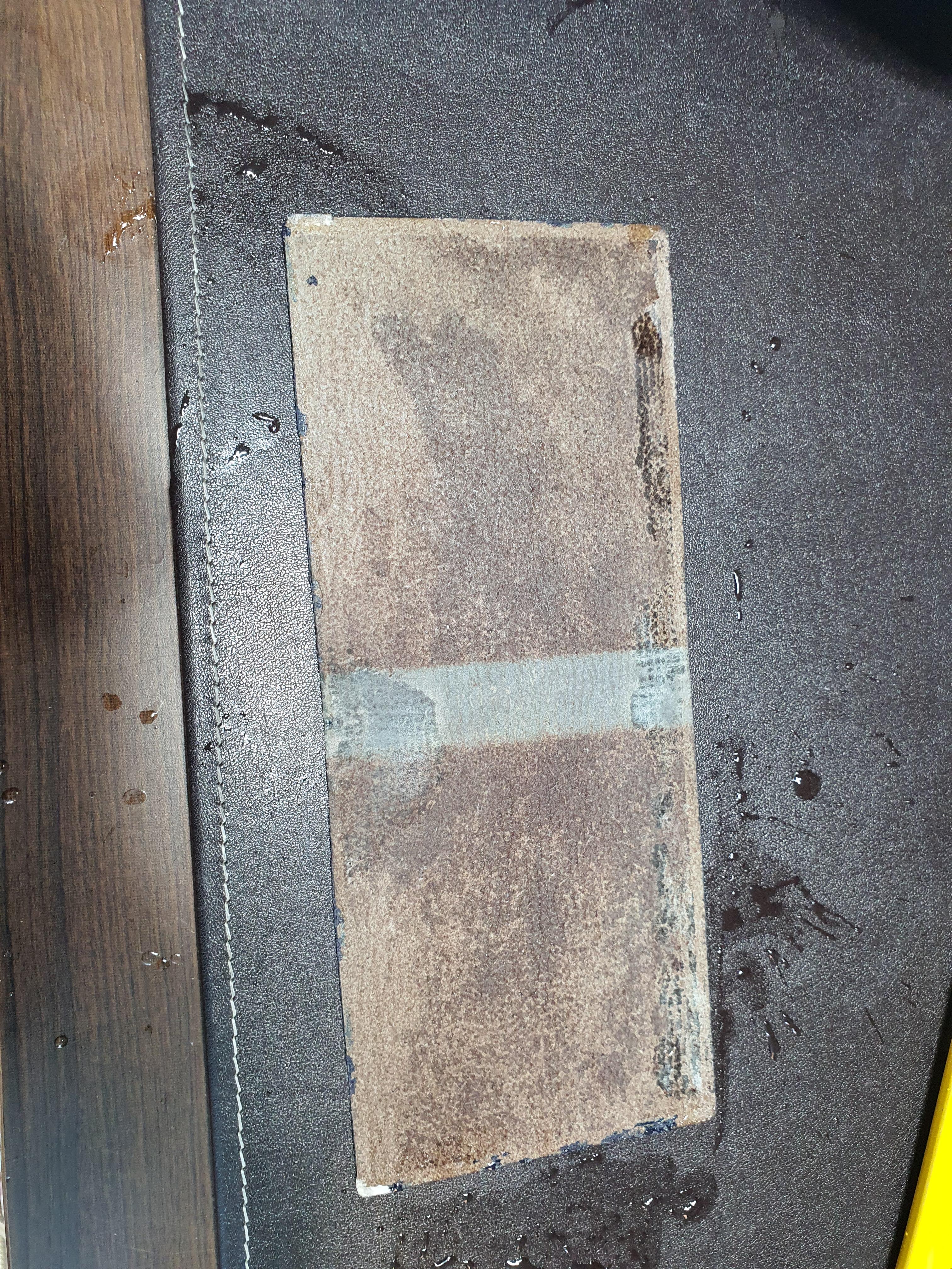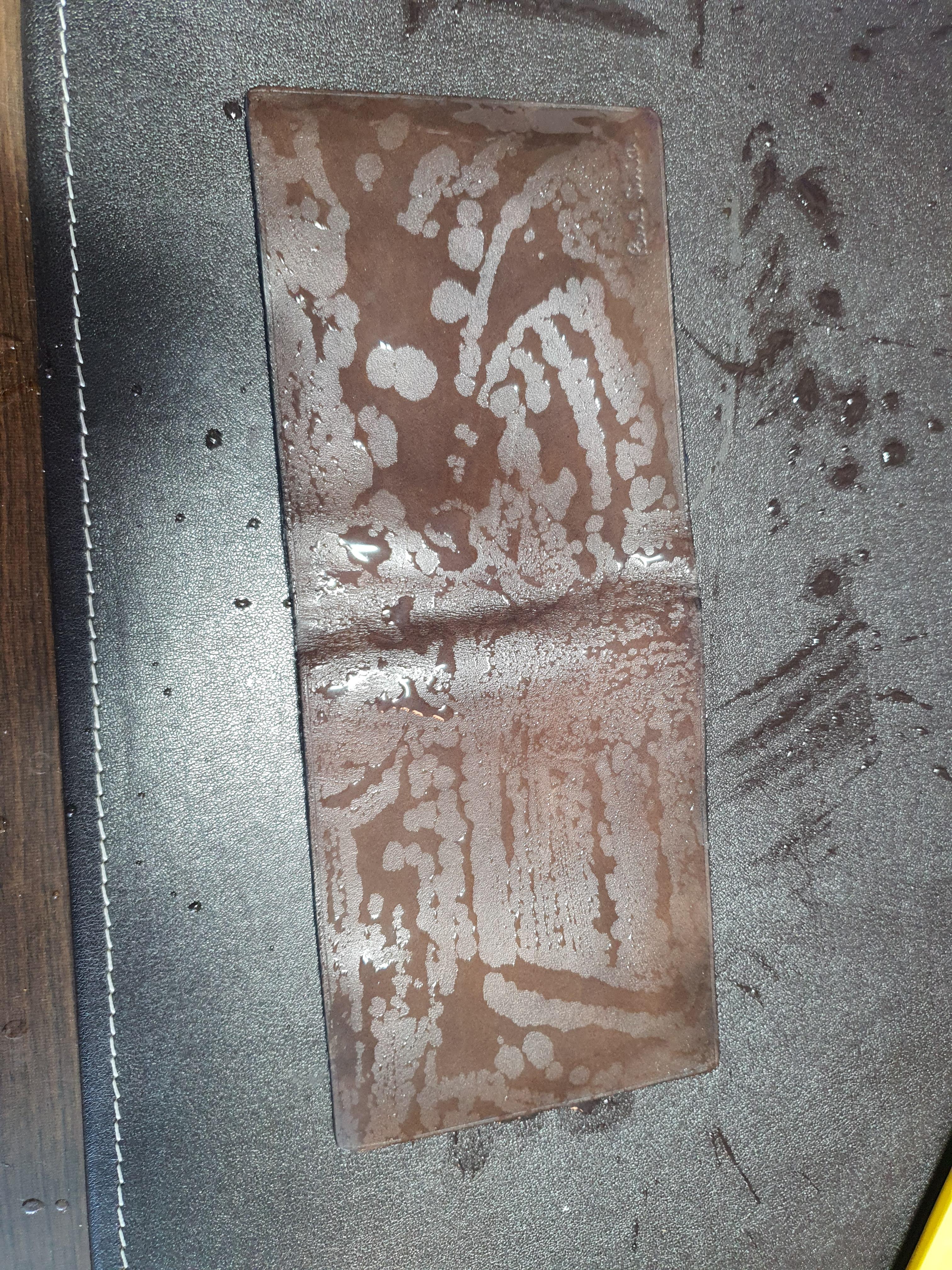 1) 지갑 가죽에 골고루 약간의 물을 뿌려준다