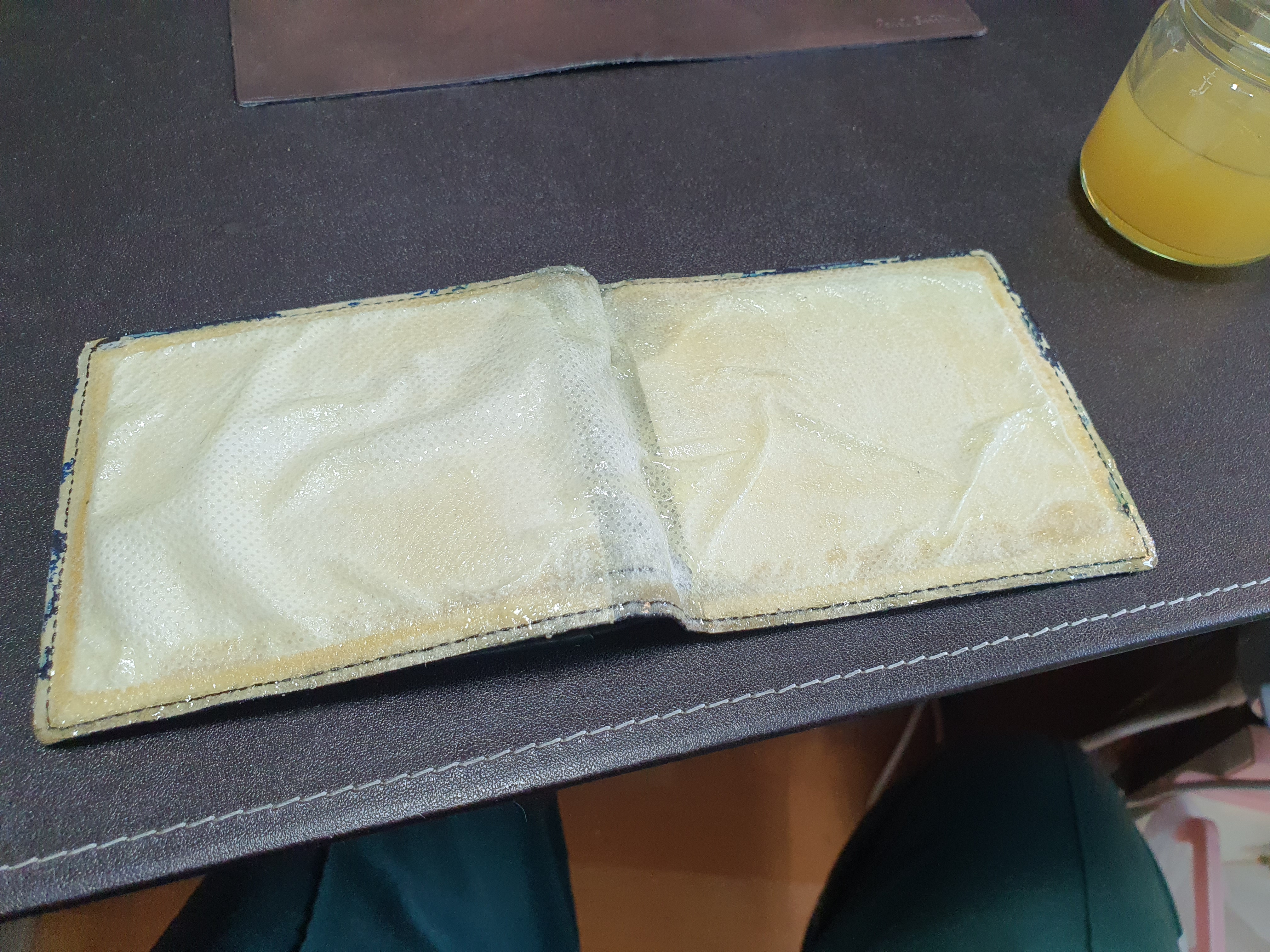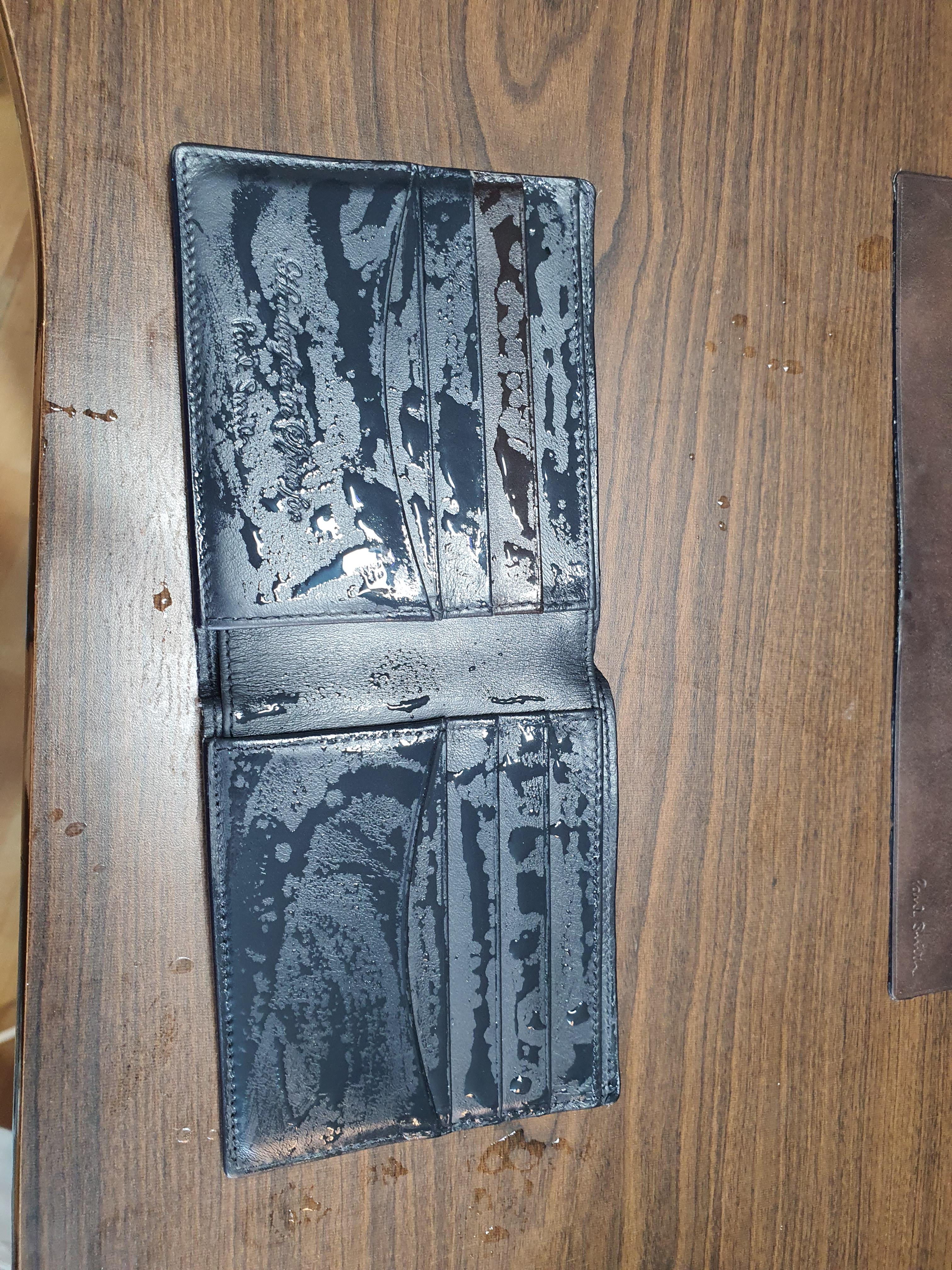 (노트가 수분을 끌어당겨서 좋지 않을 것 같긴한데 … 어짜피 이미 망했다 라는 생각의 지갑이었기 때문에…)