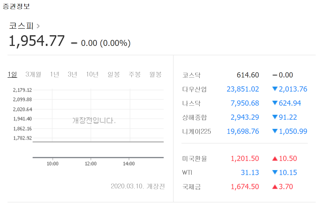 | 코로나 바이러스 - 환율, 코스피, 다우지수, 원유 가격 변화 (8) | 2020.04.01 |