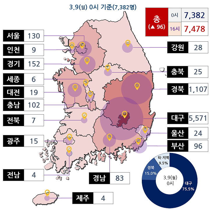하루만에 4천명씩 증가하던 검사진행은 확 줄었고