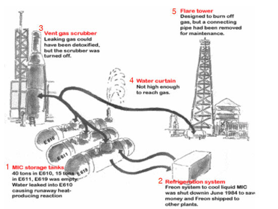 1984년 12월 2일 ~ 3일, 인도 보팔에서 비극적인 사고가 일어났다. 다름아닌 살충제 가스가 유출하여 3800 정도의 사람이 죽었고 5만명 이상의 사람이 피해를 입게 되었다. 이 사고가 더 비극적으로 느껴지는 이유는 충분히 예방되어 질 수 있는 사고이자 후진국이라는 이유로 입은 피해가 더 크기 때문이다.
