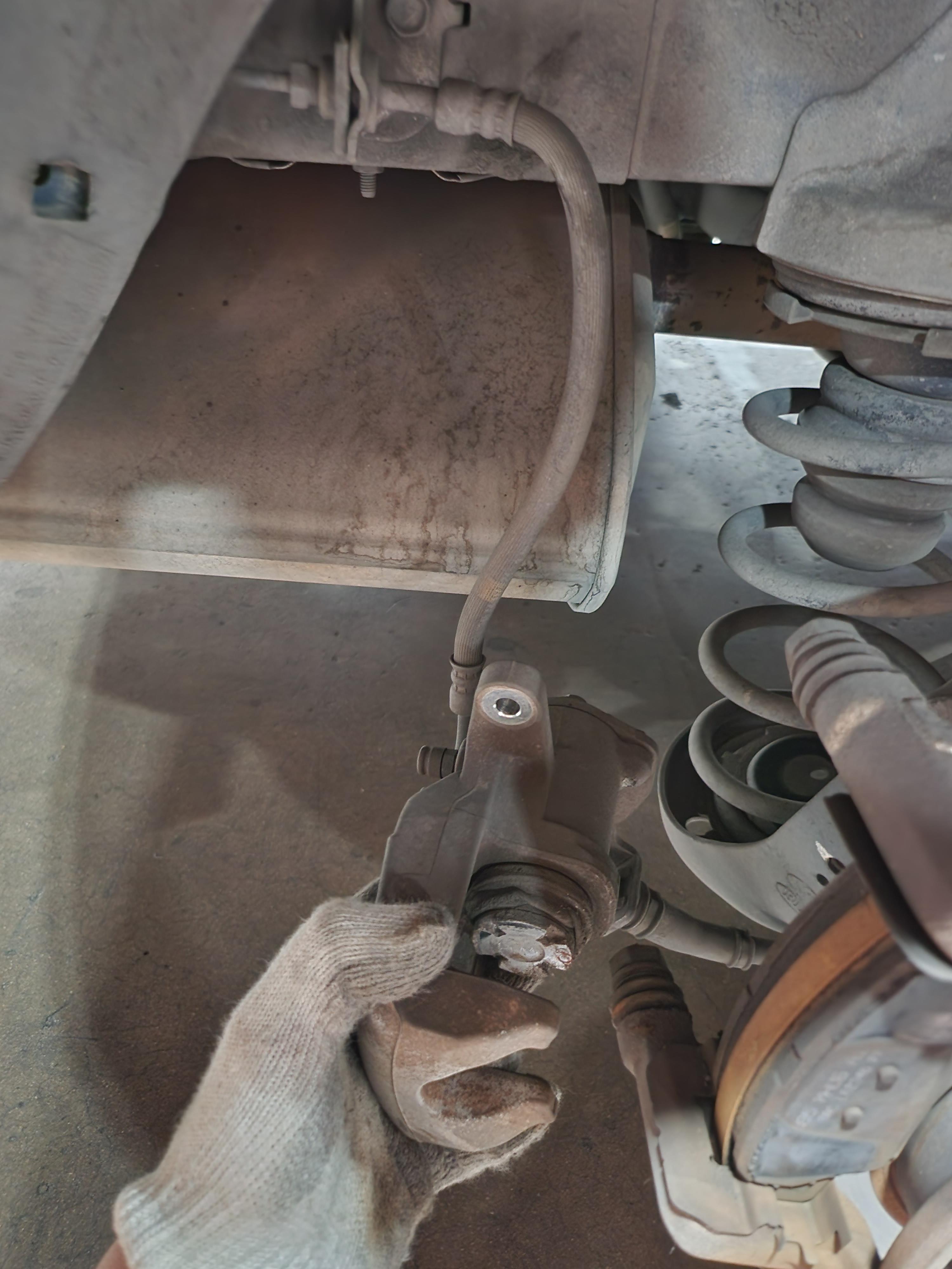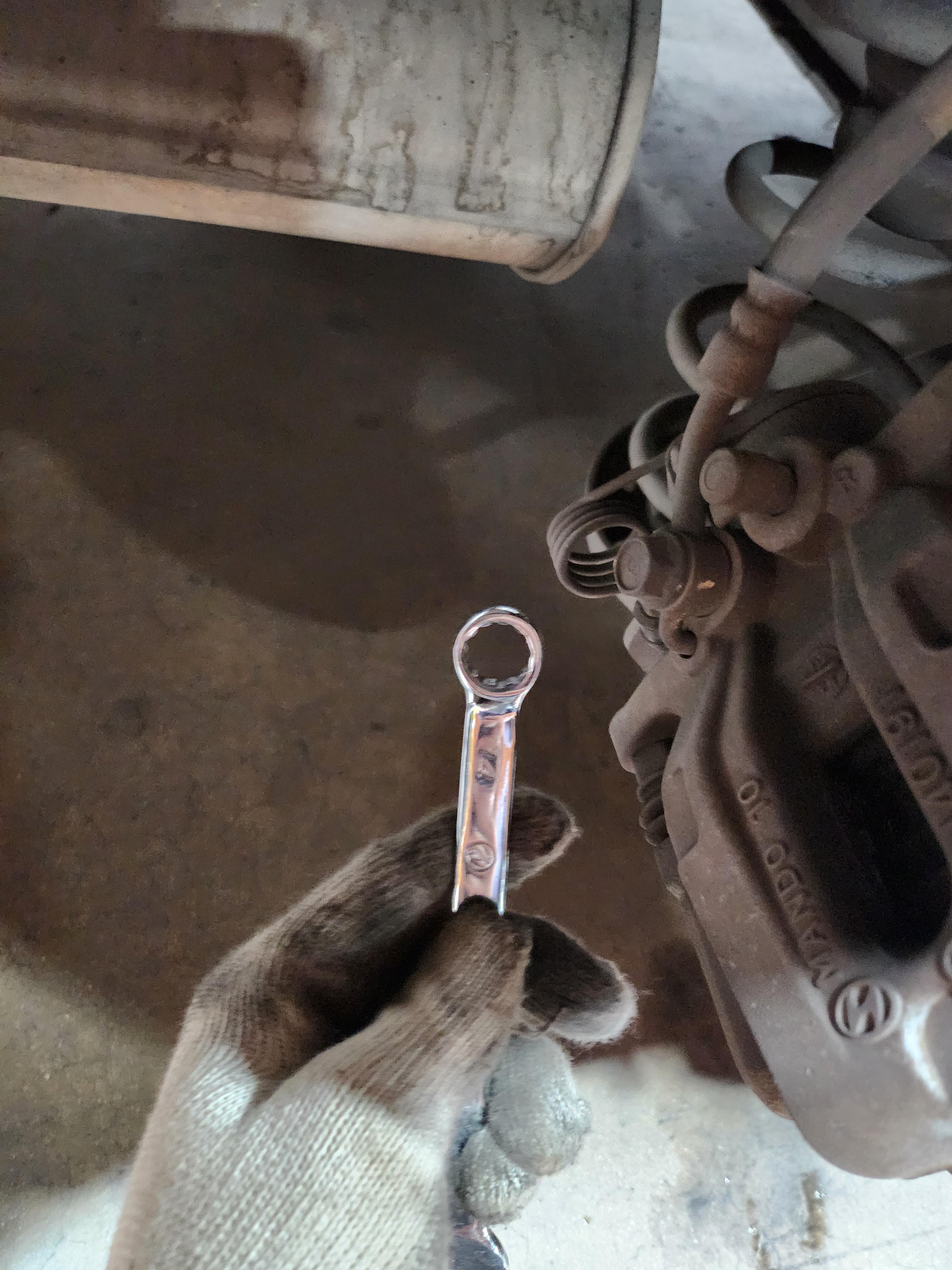 원래 Socket wrench 를 사용하여 풀었으나 뒤에 사이드브레이크 부분때문에 사용하지 못했다. 스패너로 따로 풀었다.