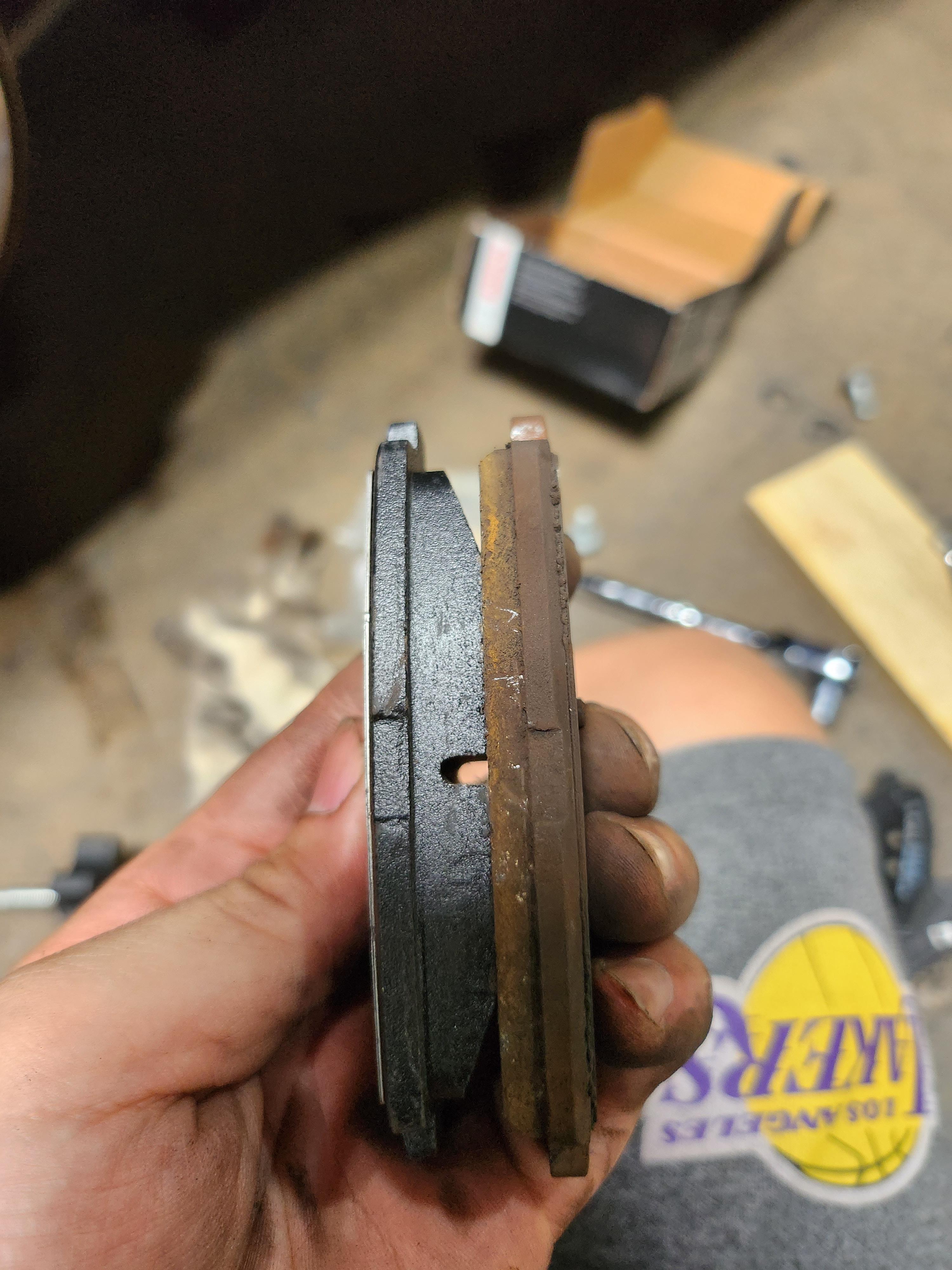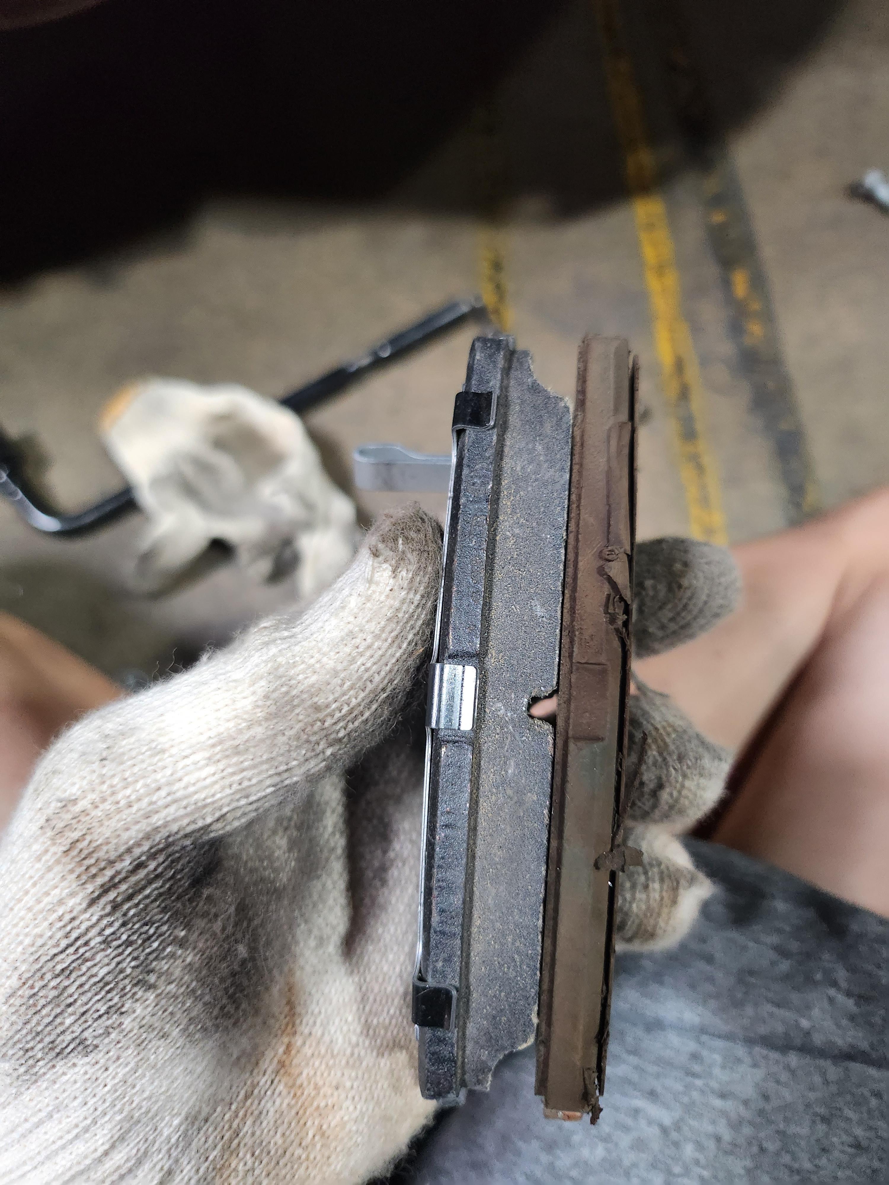 제법 많이 마모가 되어 있었다. 보통 3mm 이하로 되어 있으면 교체하라고 하는데 거의 전부 마모가 되어 있었다. 여기서 훨씬 더 쓰게 되면 이제 디스크 마모가 된다.