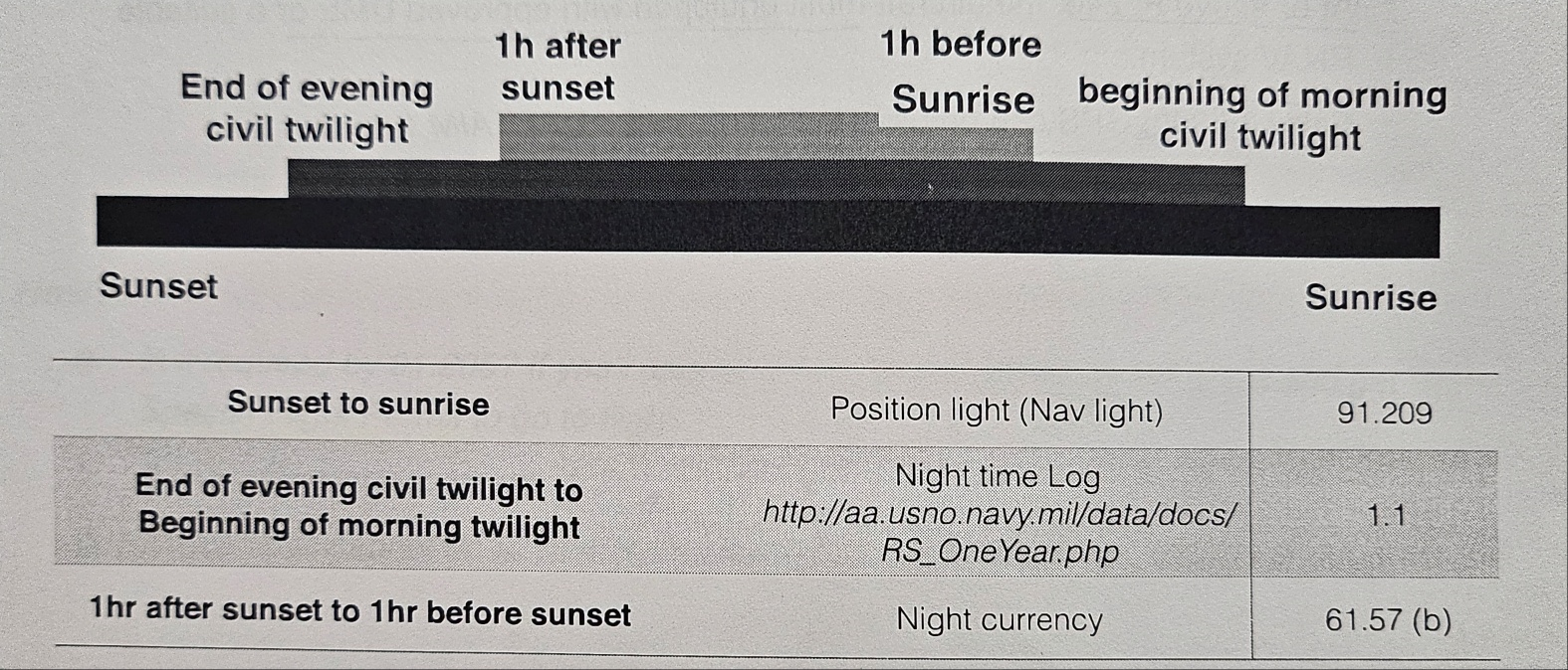 : From the end of evening civil twilight to the beginning of morning civil twilight, as published in the Air Almanac, Converted to local time.