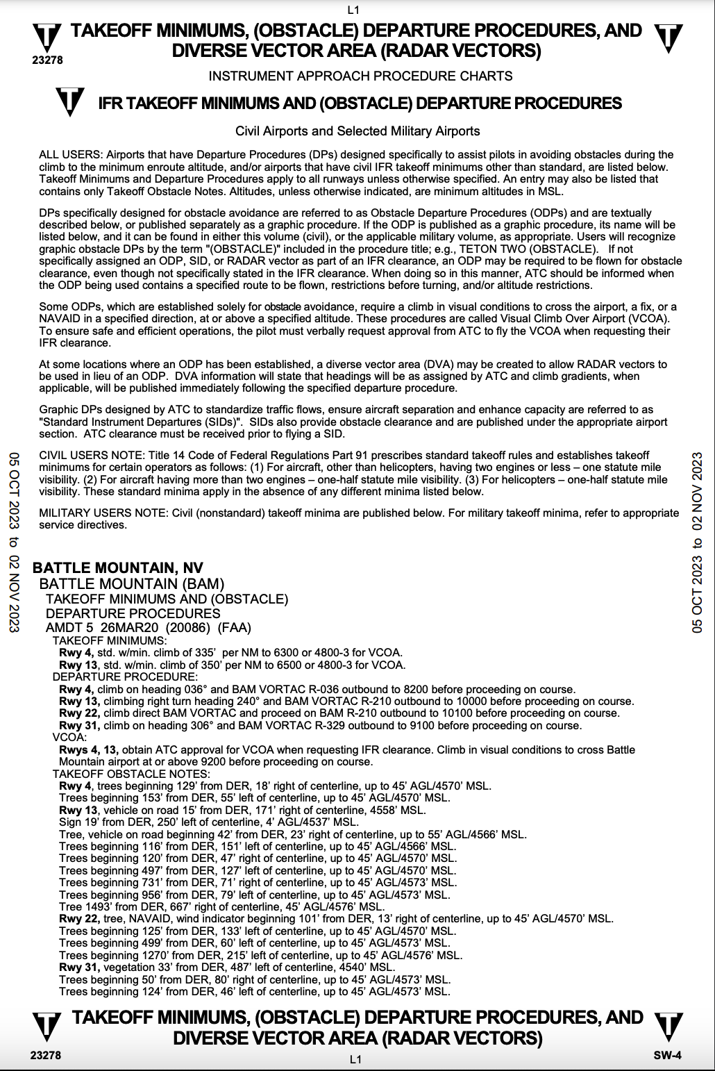 - Provides obstacle clearance - Required at any airport with an obstacle that breaks the 40:1 OIS (152 FPNM) - Can be textual or graphical - one per airport |