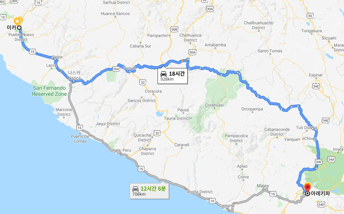 이카에서 아레키파로 가면서 다른 곳도 들르고 그러다보니 더 먼 거리로 돌아가는 것 같았다.