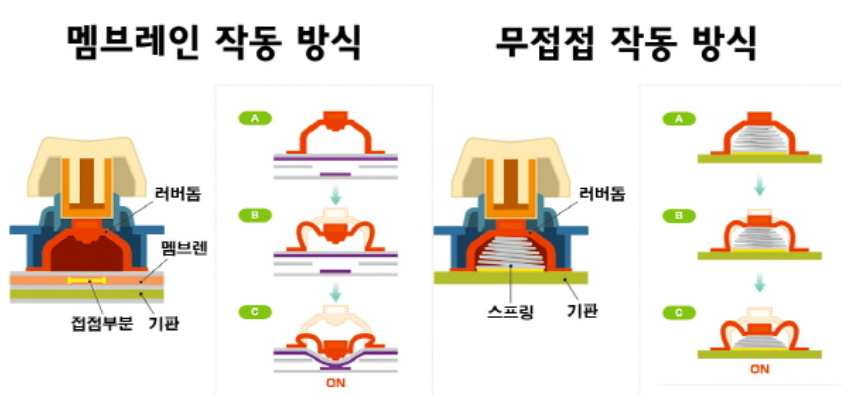 - 멤브레인과 비슷하나 러버돔 아래 스프링이 있다