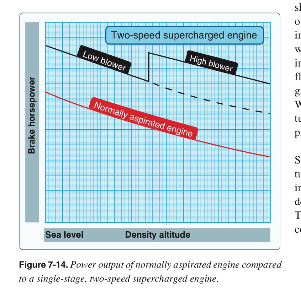 An aircraft reciprocating engine equipped with a supercharger that allows it to maintain its rated sea-level horsepower to an established higher altitude.
