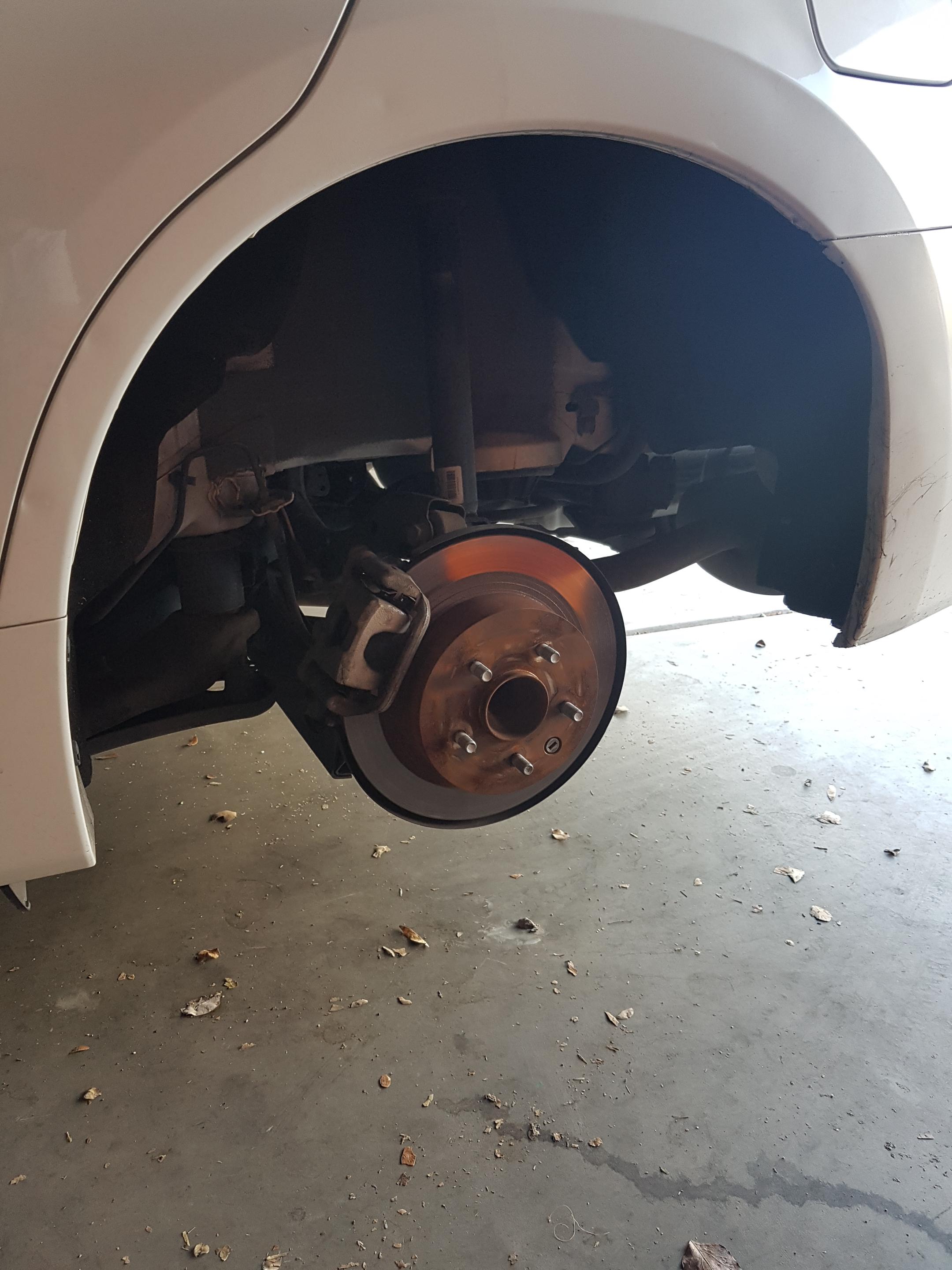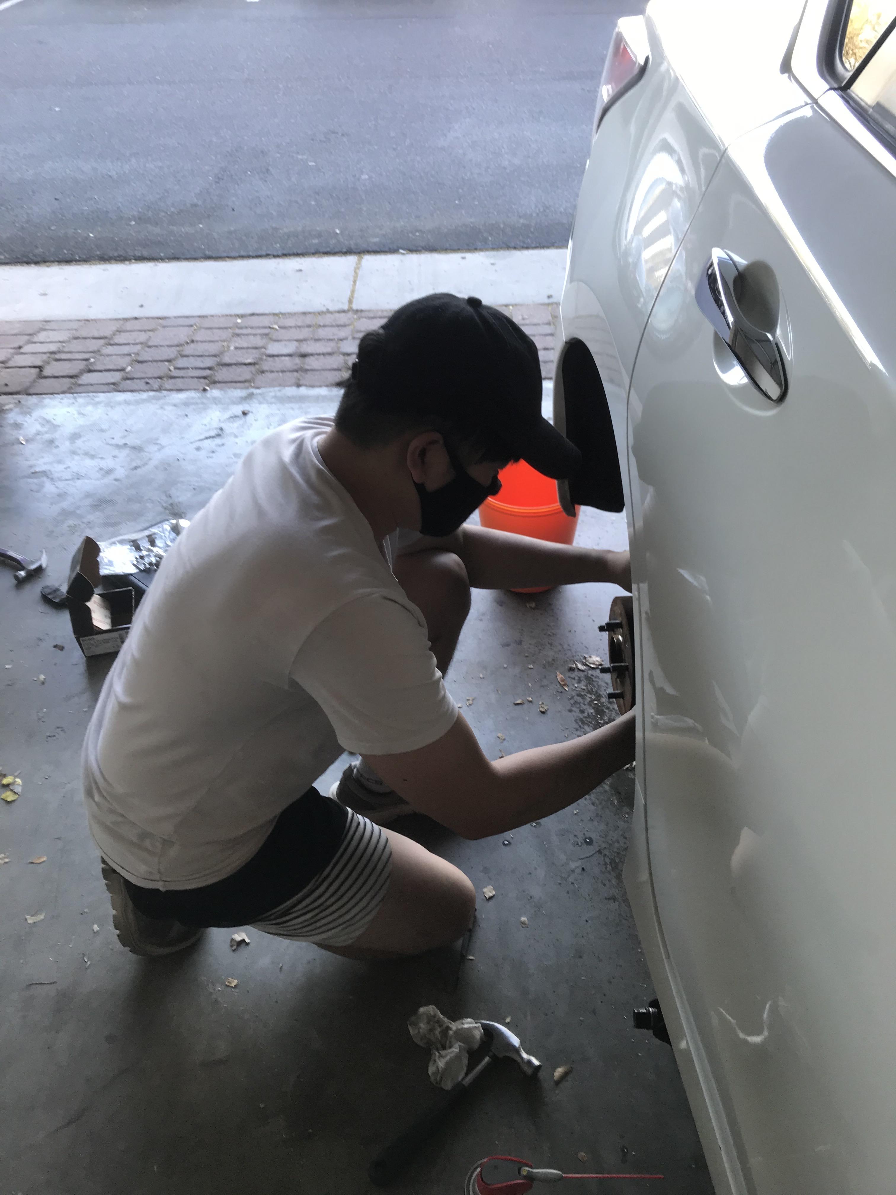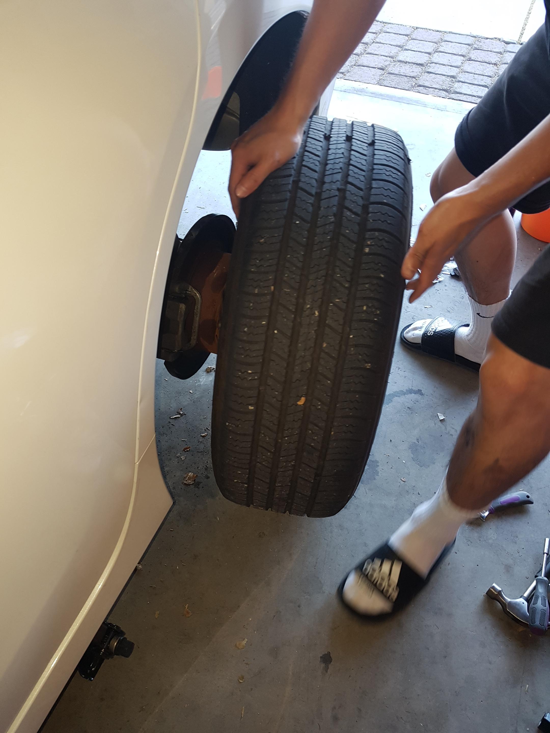 - 원래는 토크렌치가 있으면 좋아요. 보통은 없으니 ... 동등한 적당한 힘으로 5개의 너트를 조으세요. 무작정 세게 조으 면 볼트 산이 나가거나... 안 좋아요. 이 적당한 힘... 중요합니다!
